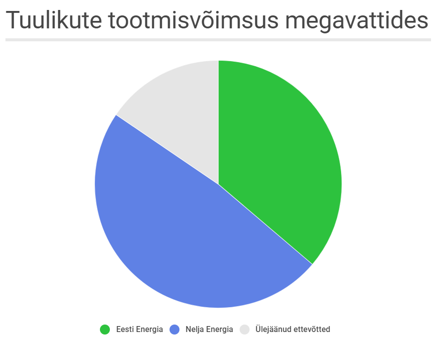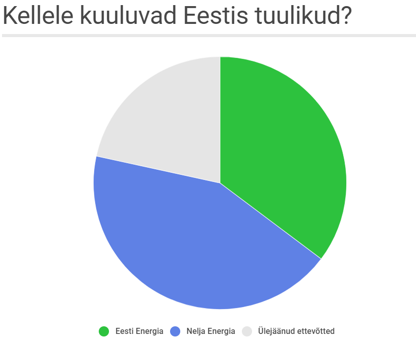 爱沙尼亚风电场的总功率约为310兆瓦。集中两家大型能源公司将意味着一个全国风电垄断,市场份额达到85%,而私营部门的统计数据仅保持统计。未来,Eesti Energia的可再生能源公司Enefit Green也将获得全国风能补贴。