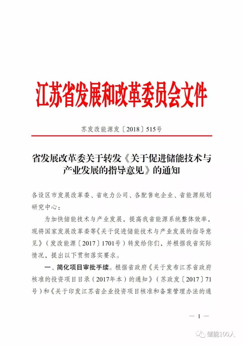 江苏省发改委本月初发布了《关于转发<关于促进储能技术与产业发展的指导意见>的通知》(以下简称《通知》)。除要求加强贯彻去年10月五部委发布的储能发展指导意见外,还特地提出“简化项目审批手续、加强规划统筹发展和分级分类协调管理”等三大具体落实要求。