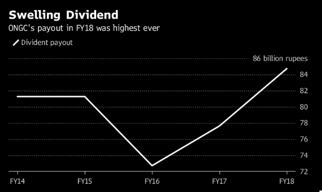 ONGC最大的股东总理Narendra Modi的政府一直在攻打包括印度最大的能源探险家在内的国有公司,以弥补其财政赤字。在这个公司被命令增加投资以帮助削减美国原油进口量的时候,这使该公司的资金枯竭。ONGC上个财政年度支付了4260亿卢比作为政府的股息,并购买其在炼油厂的股份。