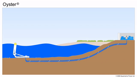 苏格兰海浪电力公司Aquamarine Power花费数月时间在Orkney测试其Oyster 800波机。这是世界上最大的使用波浪能发电的水力发电机。它通过将高压水泵入其水力发电涡轮机来工作,该涡轮机然后为在其附近用于电力消耗的电网供电。该装置即使在浅水深处也可使用,并且易于维护。该公司预计,它可以使用20个牡蛎为9,000个房屋供电。