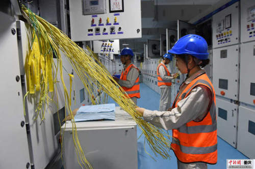 14日,记者随国网重庆市电力公司工作人员来到重庆朝天门来福士广场施工现场看到,国网重庆市送变电公司负责施工的朝天门110千伏输变电工程,进入到电气设备调试阶段。作为中国国内容量最大的110千伏变电站,该变电站将确保在6月30日前完成全部施工任务,并保障今年迎峰度夏期间朝天门码头周边的稳定可靠供电。