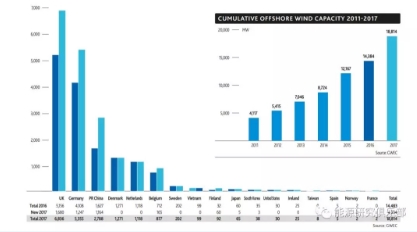 2017年是全球海上风电行业精彩的一年:全球首座零补贴海上风电在德国中标;荷兰海上风电“零补贴”投标;风机大到令人难以置信;计划建造一座比目前欧洲海上风电总装机两倍的海上风力岛;海上风电市场大量扩张,包括印度、澳大利亚、巴西和土耳其这样的新兴市场。快速成熟的技术意味着海上风电正在逐渐成为主流能源。