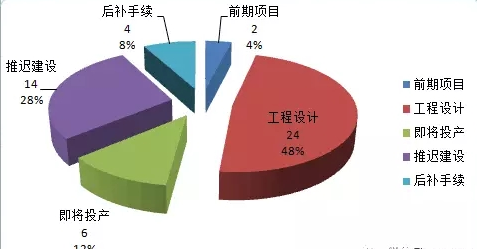 据BHI最近对2016和2017 核准项目跟踪调研获知,50个项目中,26个项目参与机会多,2个处于前期工作阶段,24个处于工程设计阶段,同时正在开展招标采购工作;6个项目建设进入尾声,设备采购完毕或者即将投产;14个项目进入缓建或暂停建设名单,可能推迟建设;4个项目后补核准手续。