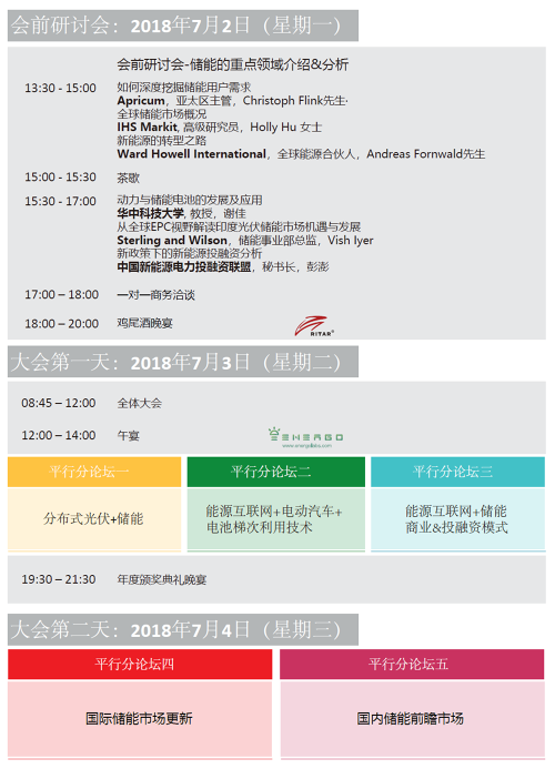 “2018中国国际光储充大会”将把“会”和“展”完美结合,呈现一场国际化光伏+储能行业的盛典。同时以“储能,光伏行业的未来”为主题,于7月2日-4日在上海连续召开5个分论坛,分论坛议题覆盖“分布式光伏+储能”、“能源互联网 + 电动汽车”、“新能源商业&投融资模式”、“微电网及储能创新技术”、“ 储能系统与光伏微网/光热发电/风能综合利用”等热点话题,邀请100余位海内外演讲嘉宾针对具有高关注度的话题展开研讨,为业内企业提供一个全球领先的B2B交流平台。