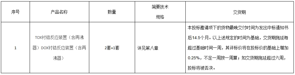 1.1 项目概况:TOX衬锆反应装置(含再沸器)DOX衬锆反应装置(含再沸器) 2套+1套 (详见招标技术文件)