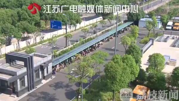 这座新能源车棚位于江阴市供电公司生产区,与普通车棚不同的是,车棚具备光伏、充电、储能的功能,既能为车辆遮风挡雨,又能利用棚顶太阳能创造出的清洁能源,供电动车充电,以及灯光照明。