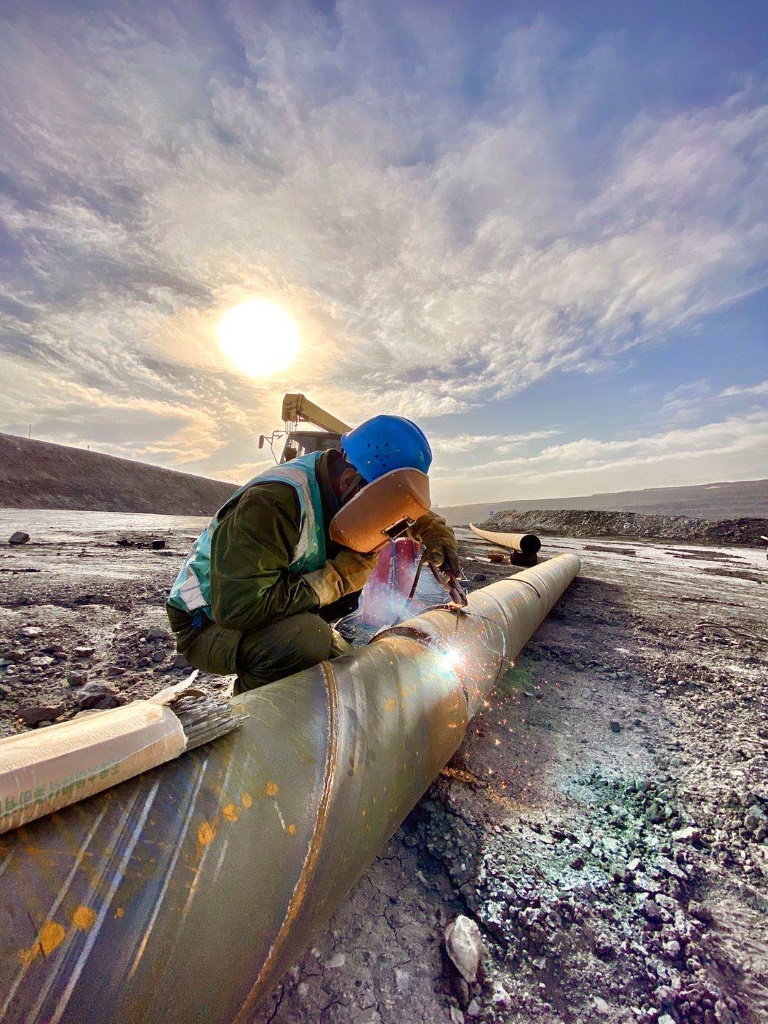 建好“指挥部”,让排水更高效。 积极应对大风、降雨极端天气突发状况,第一时间启动防汛应保供应急预案,执行“三级”领导24小时值班制。焊接外排管路约1.3万米,分流疏干减缓排水压力,同时利用PC端控制和微信小程序远程控制排水泵流量,日排水量最高0.8万立方米,可容纳800万立米存水区,铺设沟渠隔水土工布,严防水土流失导致边坡失稳。生产组织、机电保障、物资供应、人员调配等方面已全部进入“战时状态”。