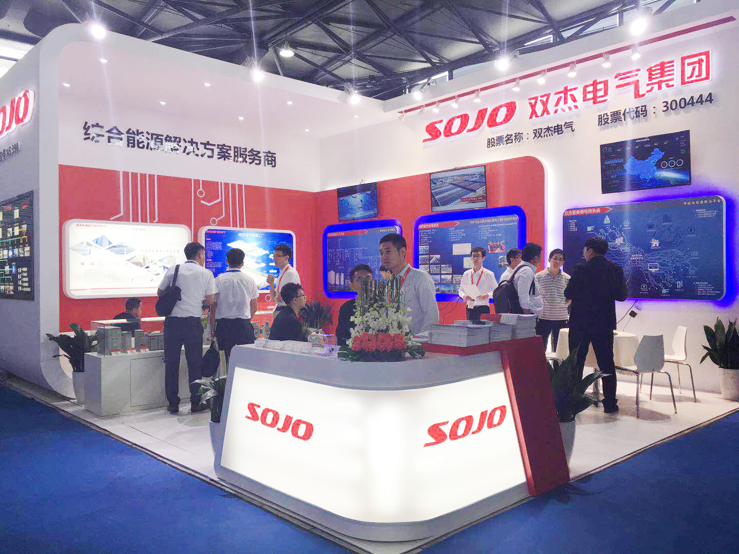 基于对电力系统多年研究,面对大量的新能源对电力系统影响及冲击,双杰电气俯瞰行业全景,站在综合能源服务的观点上,在2018SNEC展会上展示了三个层面。综合能源控制系统、微电网实施方案及业绩、配套全系列一二次电气设备及实施方案。在微电网层面重点展示了分布式光伏、储能、微电网一体化的设计,同时突出了充电站相关的设计方案。在公司的展台上,双杰电气的智能微电网系统蓝图清晰可见,其包括智能光伏系统、智慧储能系统、智能充电站系统、开放的能源服务运营平台。