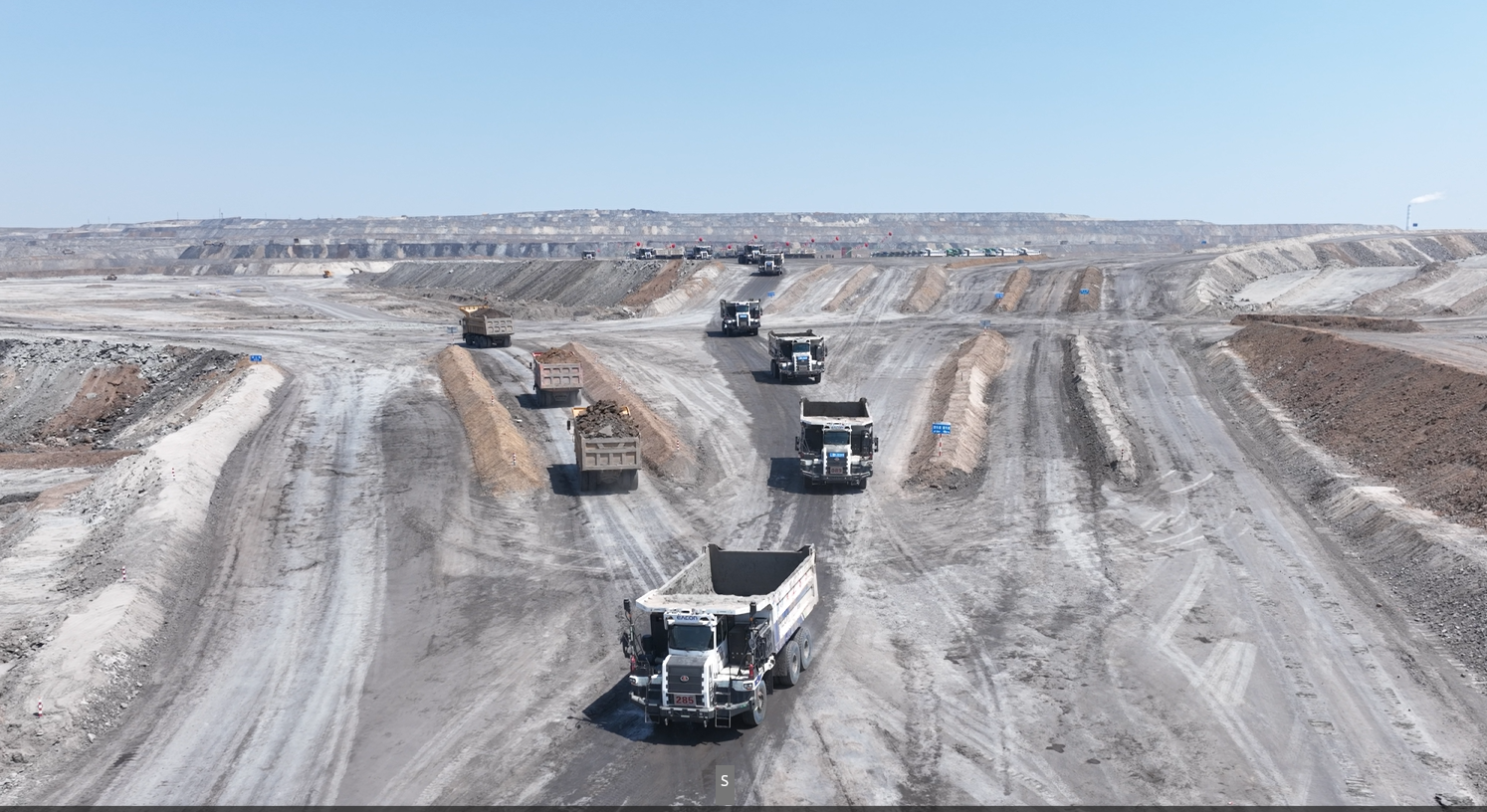 2024年初,扎哈淖尔露天煤矿携手久兴公司、东方公司、易控智驾,率先投入33台无人驾驶矿卡开展编组试运行。