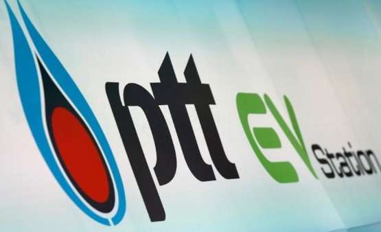 文件图片:2016年8月15日,泰国曼谷的商用EV(电动汽车)充电站启用期间,PTT Pcl能源公司的标志被看到。路透社/ Jorge Silva / File Photo