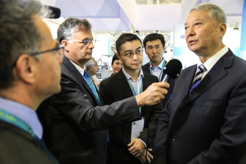 开幕式后,王寿君接受了法国媒体采访,就中国核能发展、闭式循环路线、与法方合作、参加本届核工展的重要性等内容回答了记者提问。他指出,中核集团将在“一带一路”倡议下,以更加开放的姿态,发挥全产业链优势,与法国以及全球合作伙伴携手开启核能发展新时代。