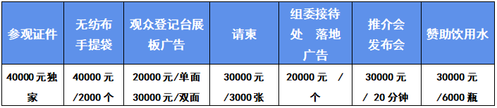 ●标准展位:国内企业:(长×宽×高:3m×3m×2.5m)¥12,800 / 个;国际企业:¥20,000/个(含搭建楣板、洽谈桌椅及照明等)