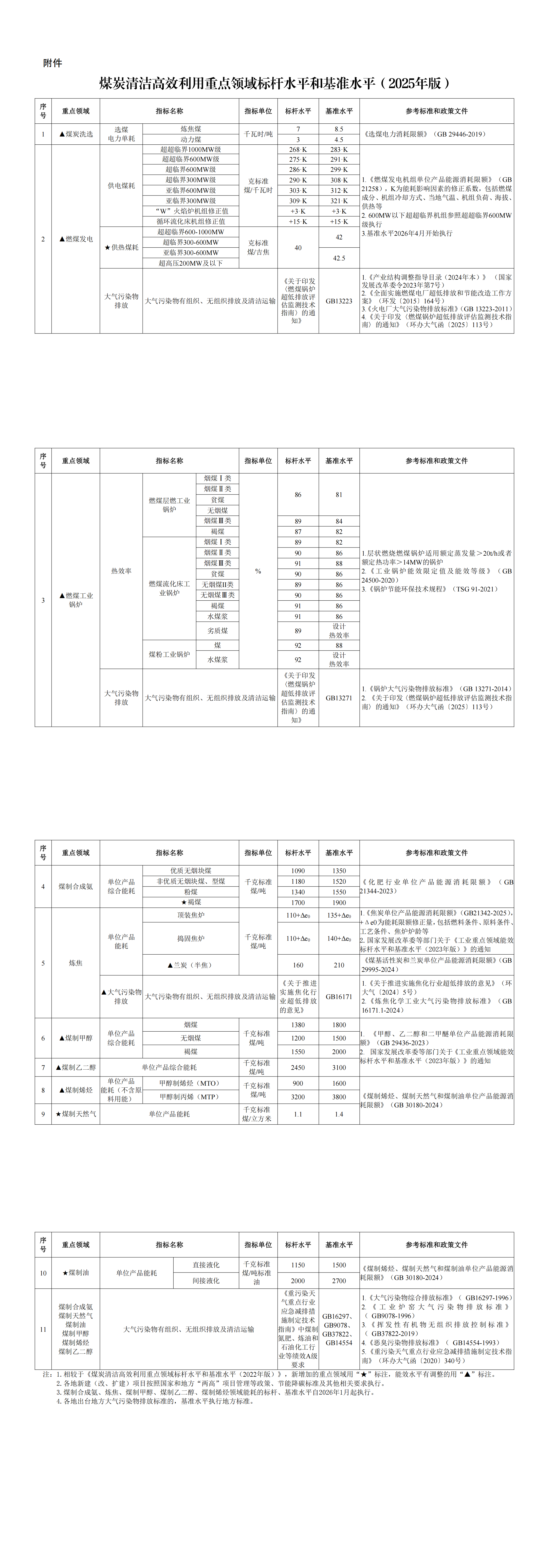 为贯彻落实党中央、国务院决策部署,推动煤炭产业由低端向高端、煤炭产品由初级燃料向高价值产品攀升,按照《国家发展改革委等部门关于加强煤炭清洁高效利用的意见》(发改运行〔2024〕1345号),经商有关方面,现发布《煤炭清洁高效利用重点领域标杆水平和基准水平(2025年版)》,并就有关事项通知如下。