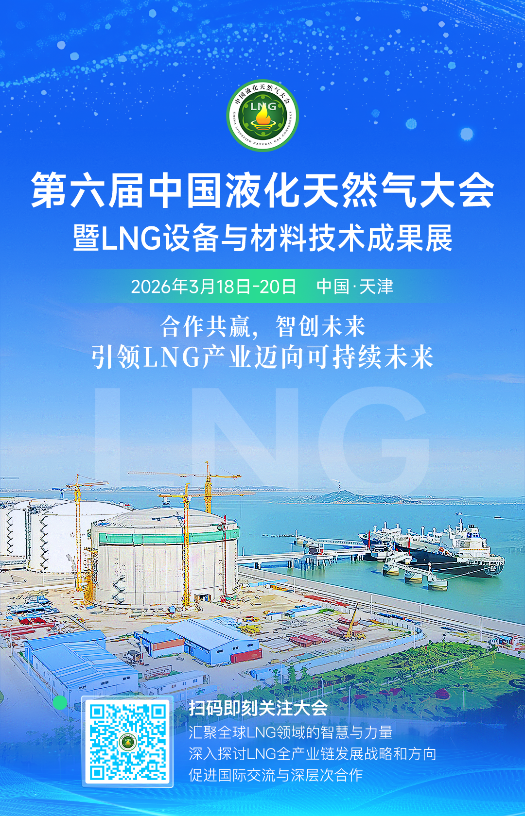 本届大会主题为“合作共赢,智创未来——引领LNG产业迈向可持续未来”,旨在搭建一个高层次、宽领域的务实交流合作平台,全面总结上届大会以来我国LNG行业取得的新进展新成果,深度解读LNG市场机遇与政策导向,分析地缘政治、气候因素、能源转型、技术创新等对LNG资源、市场、贸易等带来的深刻影响;广泛研讨LNG全产业链运营模式创新、低碳液化工艺、超大型储罐建造、核心设备材料研发等关键技术问题,推广展示最新技术成果;充分讨论百年未有之变局下LNG产业发展路径,加强国际间合作与贸易,推动全球LNG产业可持续发展,助力各国实现能源安全战略。