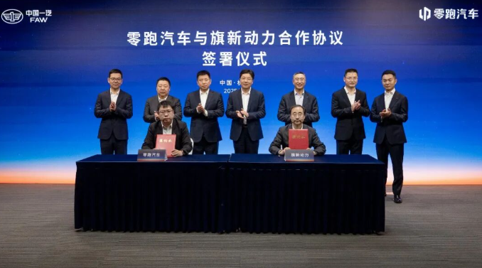 2025年12月28日,中国一汽与零跑汽车在杭州举行签约仪式,中国一汽全资子公司一汽股权投资(天津)有限公司(下称“一汽股权”)和一汽旗新动力(长春)科技有限公司(下称“旗新动力”)分别与零跑汽车签署投资协议和合作协议。杭州市委副书记、市长姚高员,中国一汽党委副书记、总经理刘亦功,零跑汽车创始人、董事长兼CEO朱江明出席仪式并共同见证签约。