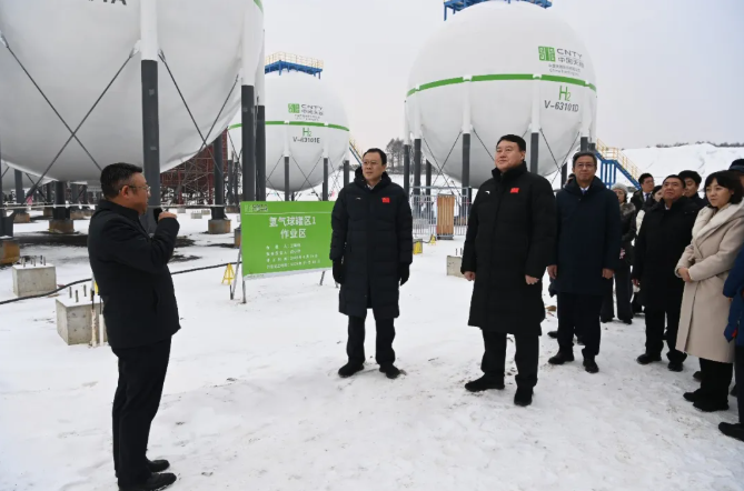 12月28日,出席辽源市第九届人民代表大会第五次会议的人大代表和出席政协辽源市第九届委员会第五次会议的政协委员,走进天楹风光储氢氨醇一体化项目建设现场开展集中视察