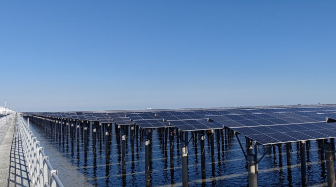 在吕四项目的安全日志里,记录着大风天气、暴雨预警、潮汐延误作业等不同的数据,如何在恶劣环境下确保施工安全与效率,成为贯穿项目始终的必修课。项目团队建立预警响应机制,以设计优化、工序协同破解困局,吕四项目的顺利并网,展现出了他们向海要地、与浪共舞的智慧。通过团队协作与科学调度,不仅成功克服了雨季施工难、大风频发、潮汐作业窗口短等多重挑战,更以安全优先为前提,实现了工期与质量双达标,最终项目以光伏发电和渔业养殖相结合,形成“水上发电、水下养殖”的复合产业模式,在5800亩海域上实现滩涂资源的高效利用和生态开发。
