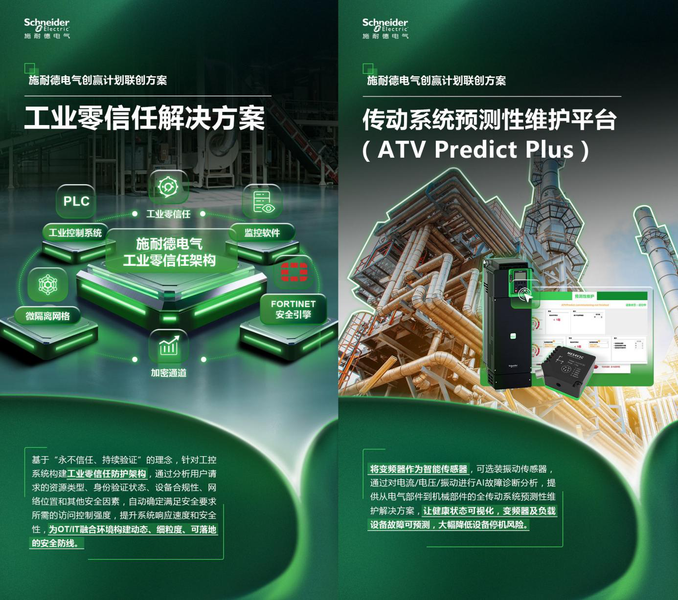 其中,有两项方案围绕运维模式与系统协同进行深化,它们分别是“工业零信任解决方案”和“传动系统预测性维护平台(ATV Predict Plus)”,合作伙伴为防特网和辉度智能,目前已落地化工、冶金、市政水等行业。