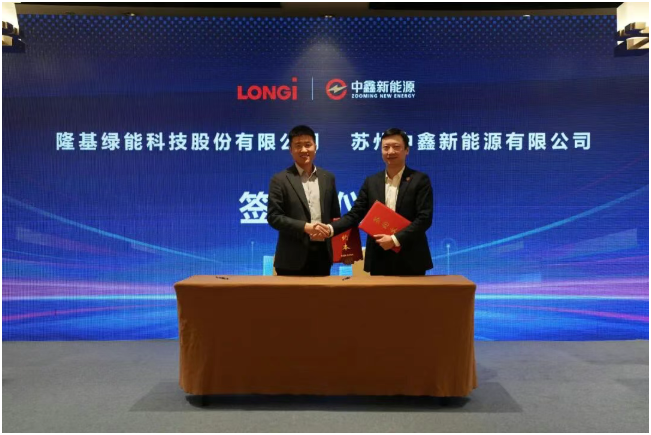竣工仪式后,隆基绿能与苏州中鑫新能源举行战略签约仪式,约定以此次合作为契机,在新能源项目开发、综合能源服务等领域开展更深层次、更广维度合作。