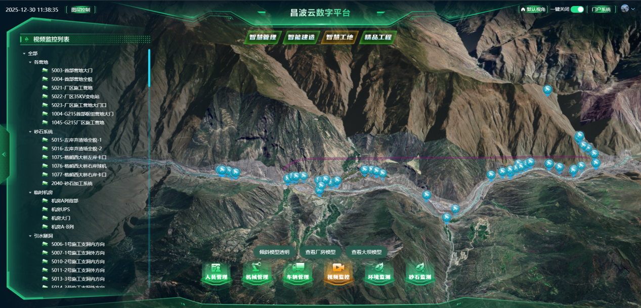 岩壁梁作为地下厂房桥式起重机的核心承重结构,其施工精度与质量直接关系机电安装进度和电站长期安全运行,是水电工程建设的重点与难点。面对复杂地质挑战,项目团队依托“昌波云”数字孪生平台,以BIM模型为基础,融合GIS、物联网、大数据及超前地质预报等技术,构建与实际工程同步的“数字电站”。