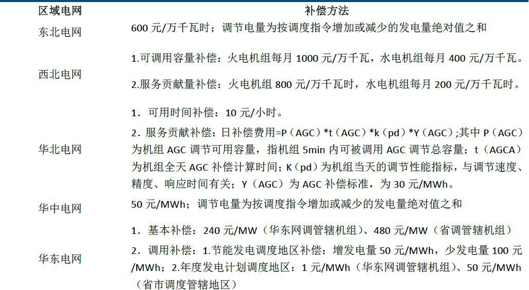 辅助服务补偿机制的建立,有望加速储能系统在火电调频领域渗透。2016年6月,国家能源局发布了《关于促进电储能参与“三北”地区电力辅助服务补偿(市场)机制试点工作的通知》,确定了储能参与调峰调频辅助服务主体地位,提出在按效果补偿原则下加快调整储能参与调峰调频辅助服务的计量公式,提高补偿力度。在五部门印发《关于促进储能技术与产业发展的指导意见》中提到,要建立健全储能参与辅助服务市场机制;参照火电厂提供辅助服务等相关政策和机制,允许储能系统与机组联合或作为独立主体参与辅助服务交易;根据电力市场发展逐步优化,在遵循自愿的交易原则基础上,形成“按效果付费、谁受益谁付费”的市场机制。