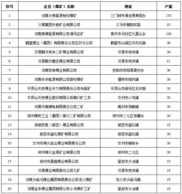 河南省2018年化解煤炭过剩产能关闭退出煤矿名单公示