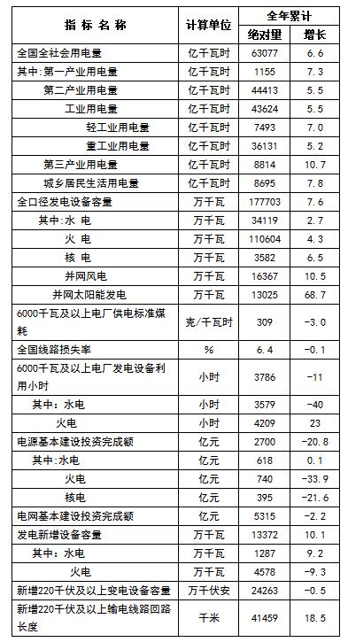 注:全社会用电量指标是全口径数据,电源、电网基本建设投资为纳入行业统计的大型电力企业完成数。