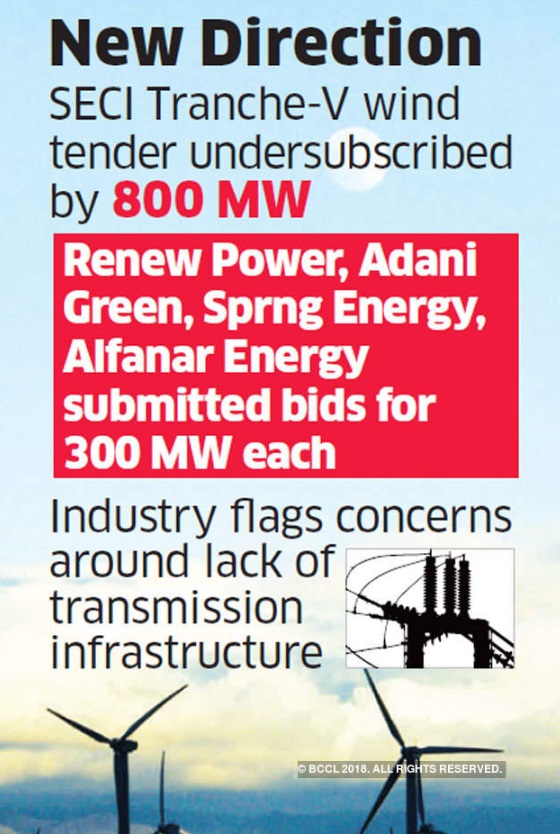 四个可再生能源开发商 - Renew Power,Adani Green Energy,Sprng Energy和Alfanar Energy -周二提交了300兆瓦容量的技术报价,占印度太阳能公司(SECI)总容量的1,200兆瓦(SECI))。行业观察人士表示,缺乏应对措施不是因为对风电行业缺乏兴趣,而是担心是否有足够的基础设施可用于撤离通过这些项目产生的电力。