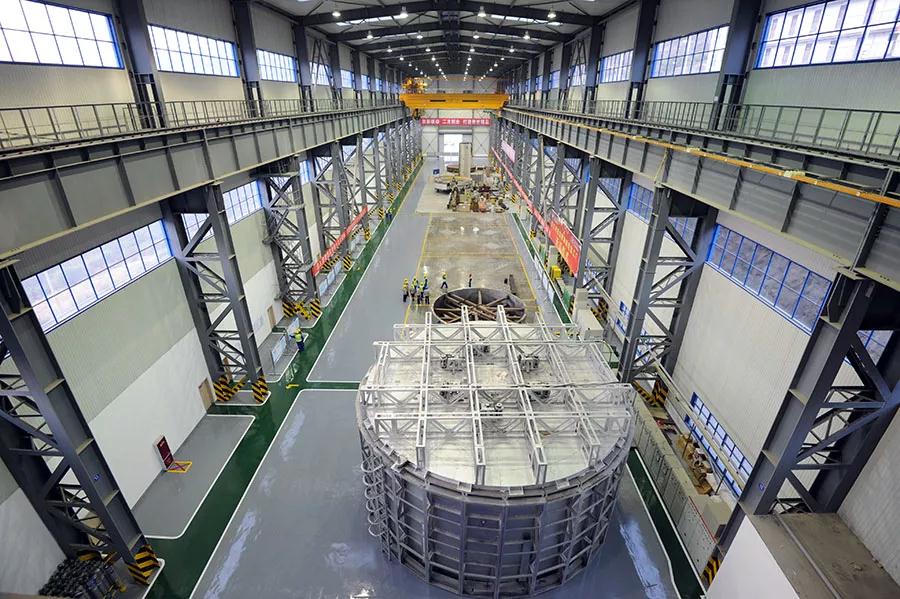 1月17日,世界首台百万千瓦水电机组转轮在东方 电气集团东方电机有限公司(简称“东方电机”)白鹤滩转轮加工厂(位于白鹤滩水电站工地现场)率先开焊。
