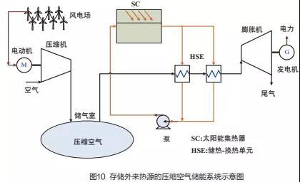 压缩空气储能系统可以利用外界热源来提升空气做功发电能力,提高系统整体效率。其可利用的热源包括太阳能热利用,工业企业如冶金、化工、水泥、玻璃等行业的余热废热,核电等发电厂的余热,生物质制取的沼气、合成气等。