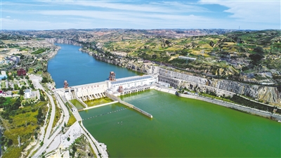 7月12日,鄂尔多斯市准格尔旗,顺利投运后的龙口水电站航拍图。近日,随着龙口水电站220千伏线路送出工程启动充电工作圆满完成,薛家湾供电局杨四海220千伏变电站恢复正常方式运行,进入试运行阶段,龙口水电站3、4、5号机组将由山西电网转入蒙西电网。龙口水电站位于山西省河曲县和内蒙古准格尔旗交接处,控制流域面积397406平方公里,枢纽任务以调峰发电为主,兼顾防洪、防凌等功能。该工程的顺利投运,对增加蒙西电网调峰容量具有重要意义。