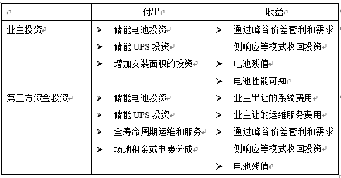 当数据中心想做成储能型的数据中心,其投资模式亦可发展改变。如果建设数据中心的业主愿意投资,则可以投资并获得全部收益;如果业主觉得看不清楚趋势,尚有风险,亦可由第三方资本进行投资,做合同能源管理(EMC),具体的投资收益分成,业主可以和第三方资本协商。笔者通过下表简单分析了分别由业主自己投资和第三方资本投资各自所付出的以及所得到的回报,供大家参考,不排除未来更灵活的收益模式或更丰富的合作模式!