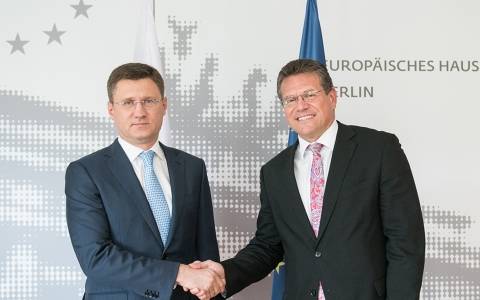 Šefčovič与柏林的俄罗斯能源部长亚历山大诺瓦克和乌克兰外交部长帕夫洛克利姆金以及俄罗斯和乌克兰代表团一起参加天然气会谈。