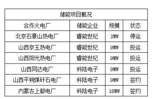 根据公开信息统计,中国目前已有6个商业化储能调频项目,科陆电子与睿能世纪各占一半。另外,锂电池企业欣旺达也在此领域布局。