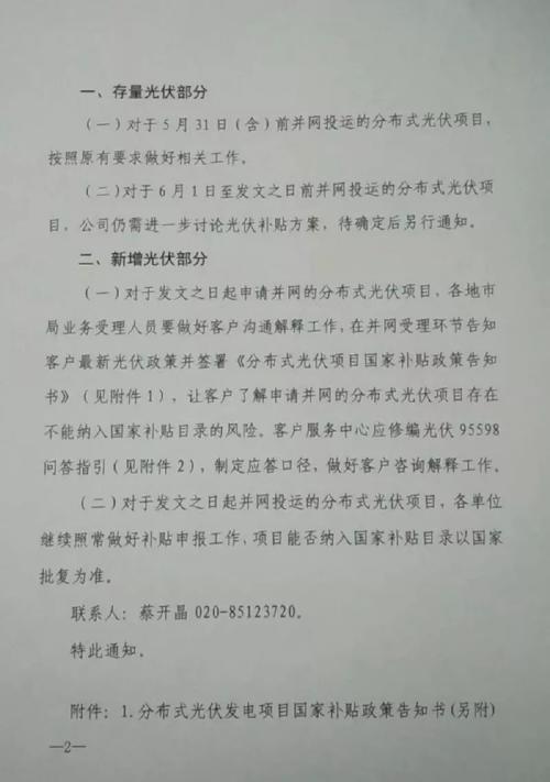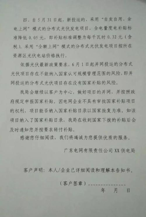 (二)对于6月1日至发文之日前并网投运的分布式光伏项目,公司仍需进一步讨论光伏补贴方案,待确定后另行通知。