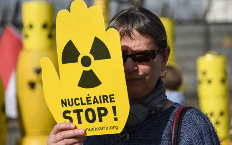 2017年3月,一名维权人士要求关闭法国的费森海姆核电站。当局于4月宣布,他们将在2020年关闭该设施 .SEBASTIEN BOZON / AFP / GETTY IMAGES