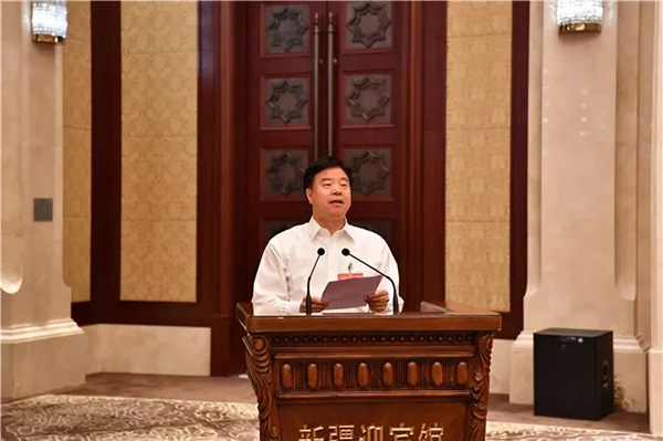新疆自治区党委书记陈全国,国务院国资委党委书记郝鹏,新疆自治区党委副书记、新疆生产建设兵团党委书记、政委孙金龙出席会议。