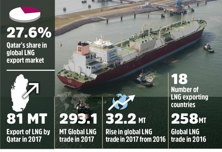 卡塔尔在全球液化天然气市场的地位预计将在未来几年变得更强劲。卡塔尔石油公司在2017年宣布计划将卡塔尔的液化天然气产量提高30% - 从77欧元增加到100万吨。