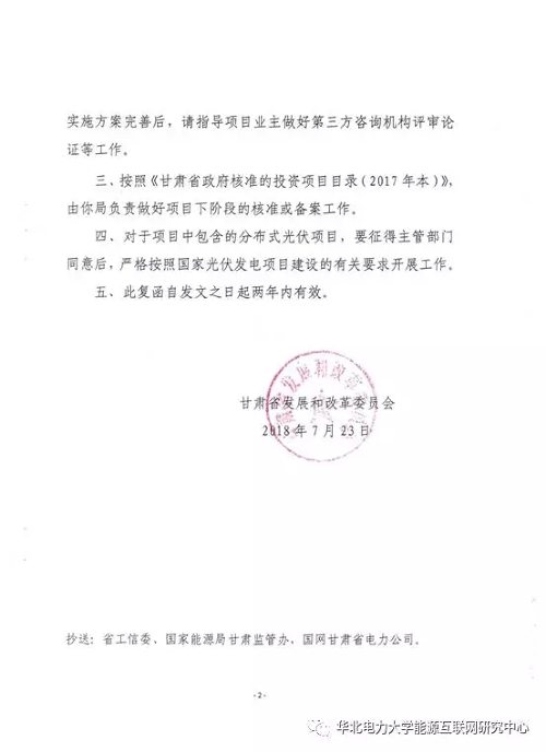 7月23日,甘肃省发展和改革委员会下发《关于兰州新区科技创新城并网型微电网示范项目的复函》(甘发改能源函〔2018〕153号),批复同意兰州新区科技创新城并网型微电网示范项目实施方案,并纳入甘肃省并网型微电网试点建设计划。此批复文件的下发标志着兰州新区科技创新城项目取得重要实质性突破,该项目实施方案由华北电力大学能源互联网研究中心负责编制。