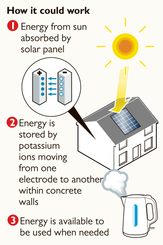 该技术意味着墙壁可以用来储存来自可再生能源的电力,而无需使用锂电池。