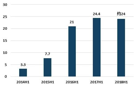 2014—2018年半年度我国新增装机情况(单位:GW)