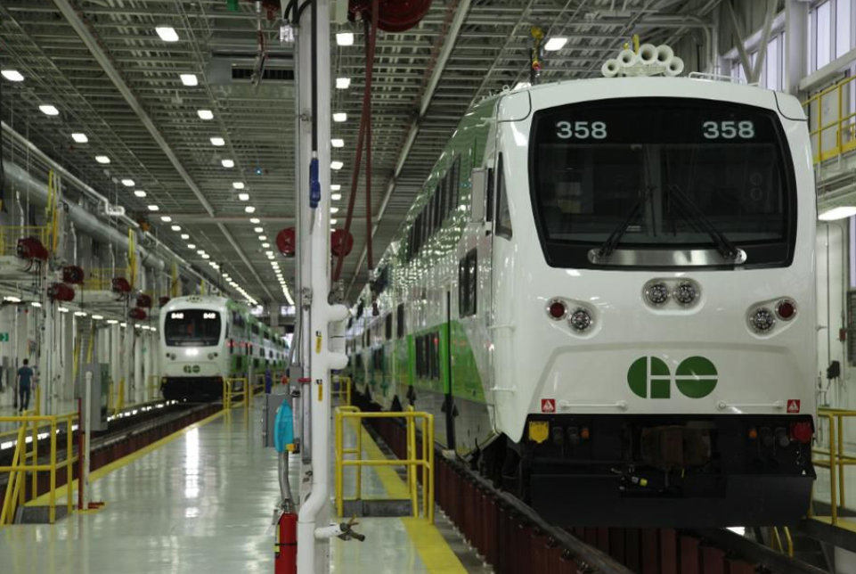 在加拿大安大略省怡陶碧谷的GO Transit Willowbrook铁路维修设施中的列车。加拿大设想了一个综合能源系统,其中小型模块化核反应堆不仅可以生产动力,还可以生产汽车,卡车和类似火车的氢燃料。(摄影:Creative Touch Imaging Ltd./NurPhoto via Getty Images)