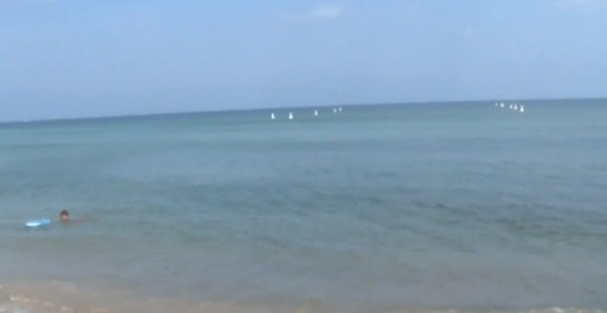 在周三退潮时,可以看到黄色覆盖物缠绕在37,500伏国家电网电力线上,它位于州立海滩的水线以下,该海滩也被称为新月海滩,是布洛克岛最受欢迎的海滩。