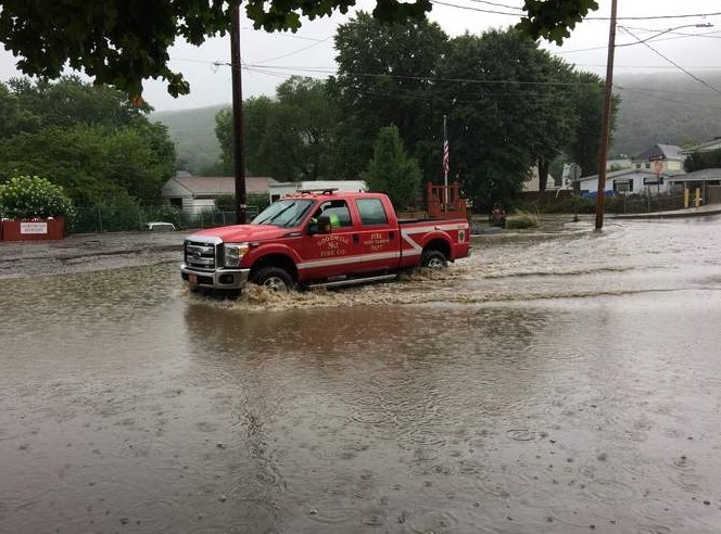 家庭和企业失去电力。洪水到达了Port Carbon的Goodwill Fire Company No.1的大门。