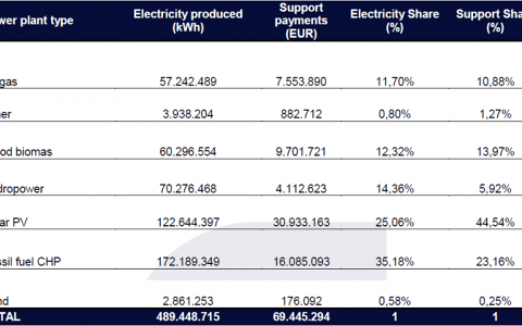 支付给太阳能光伏设施所有者的最大金额为3090万欧元,产生了122.6吉瓦时。Borzen在报告中称,化石燃料热电联产收入为1610万欧元。