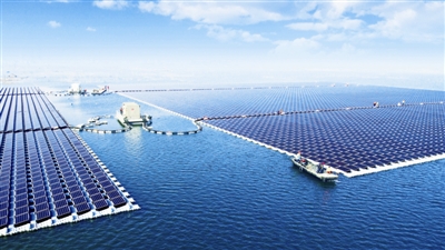 阳光电源建设的安徽淮南潘集水面漂浮式光伏发电项目,是全球单体最大的水面漂浮光伏电站。