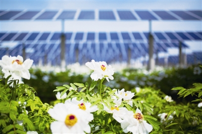 “光伏+”的推广,农光互补的电站,花团锦簇,立秋前后,这些花朵已结出饱满的果荚,等待被炼制为牡丹籽油。