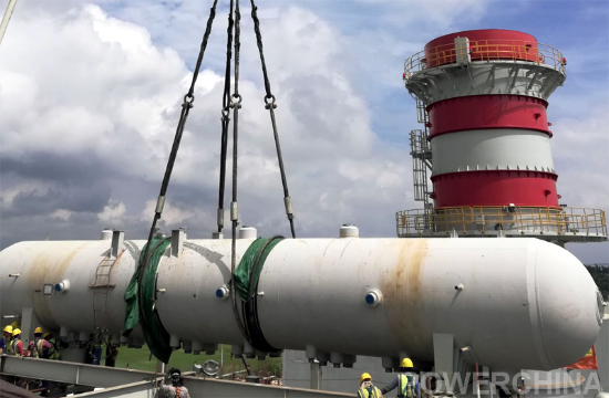 锡拉杰甘杰项目锅炉为卧式三压余热锅炉,汽包分为高压、中压及低压三个汽包,总重约207.6t,采用600t履带吊单独吊装就位。其中,高压汽包长17408mm,外径2360mm,单重为134.8t。为顺利完成吊装工作,项目部超前策划、科学组织,从汽包的基础划线、汽包运输、吊装就位等方面严格把控,首次成功采用内河驳船运输汽包等大件物资设备,并按照高、中、低的顺序开展;整个吊装过程安全、顺利、高效,用时三天顺利完成汽包吊装工作,得到业主的高度评价。