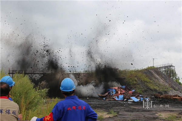宝清县双福煤矿井口爆破现场。东北网记者 侯巍 摄