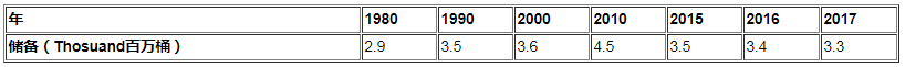 表32:自1980年以来埃及证明天然气储量为Tcm